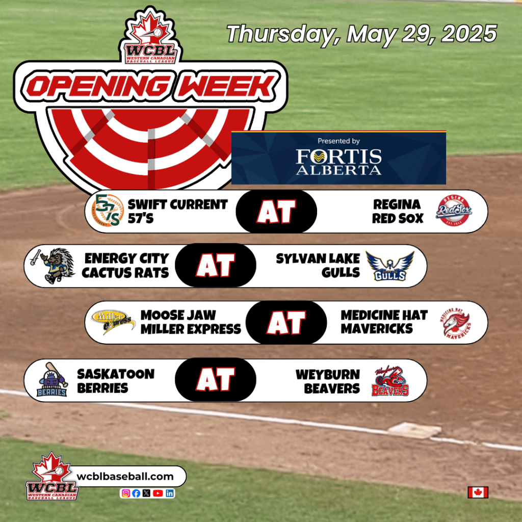 The first action for Saskatchewan-based teams takes place on Thursday, May 29th when the Regina Red Sox host the Swift Current 57’s, the Saskatoon Berries visit the Weyburn Beavers and the Moose Jaw Miller Express take on the Medicine Hat Mavericks at Athletic Park.