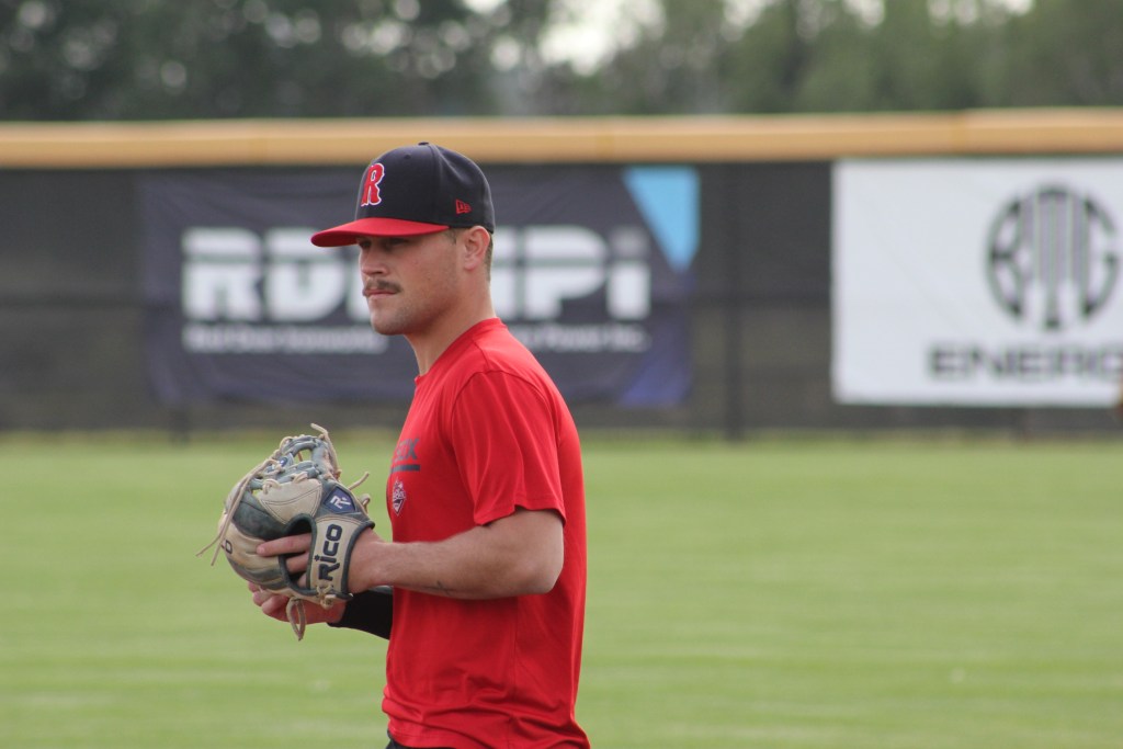 With one out in the bottom of the 10th inning in the opening game of the East Division final between the Saskatoon and Regina, Red Sox reliever Ayden Page surrendered a single to Jalen Freeman, who stole second base and then advanced to third on a throwing error by the catcher. With the potential winning run just 90 feet from home plate, Carter Beck ran the count full before Page tied him up for a strikeout on an inside pitch. The 5-foot-8 senior from Oklahoma then sat down first baseman Ethan Menard on three straight strikes to preserve the 7-7 tie. Page was in the midst of a marvelous four-inning outing that saw him strike out six batters and allow no walks against the top team in the WCBL regular season. The righthander was setting down the best hitters on the Berries with relative ease and his steadying presence on the mound allowed the Red Sox to pick up an 8-7 victory in 11 innings.