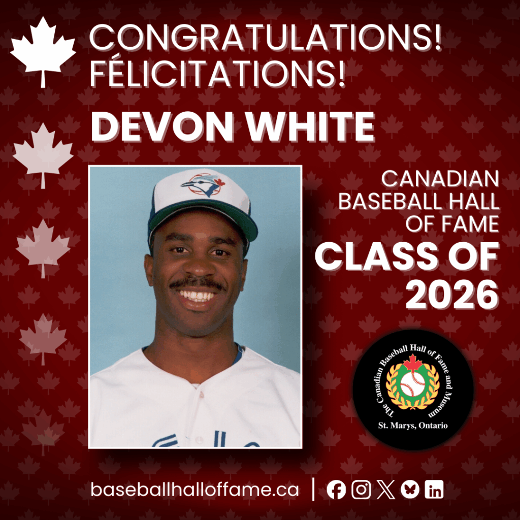 The organization, based in St. Marys, Ontario, unveiled the class of six new inductees on Feb. 5th. Among the honourees are former Toronto Blue Jays centre fielder Devon White; St. Louis Cardinals first base coach Stubby Clapp; long-serving Baseball Canada executive director Jim Baba; Women’s National Team alum Kate Psota; Montreal Expos stalwart Bill Stoneman; and former Major League Baseball (MLB) umpire Paul Runge.